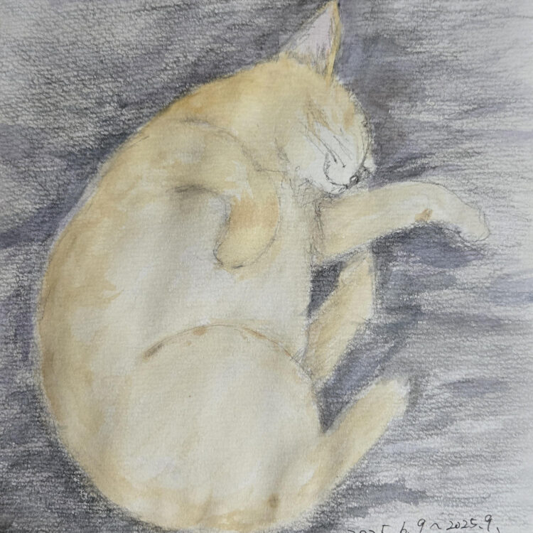 心地良さそうにリラックスして休んでいるねこちゃん、投稿者さんのそっと見守る眼差しまで想像してしまいました。さらさらと迷いなく描かれているようにも感じられて、普段からねこちゃんと共に時間を過ごしたり描かれているのかなと感じて、画面からは安心感が伝わってきました。