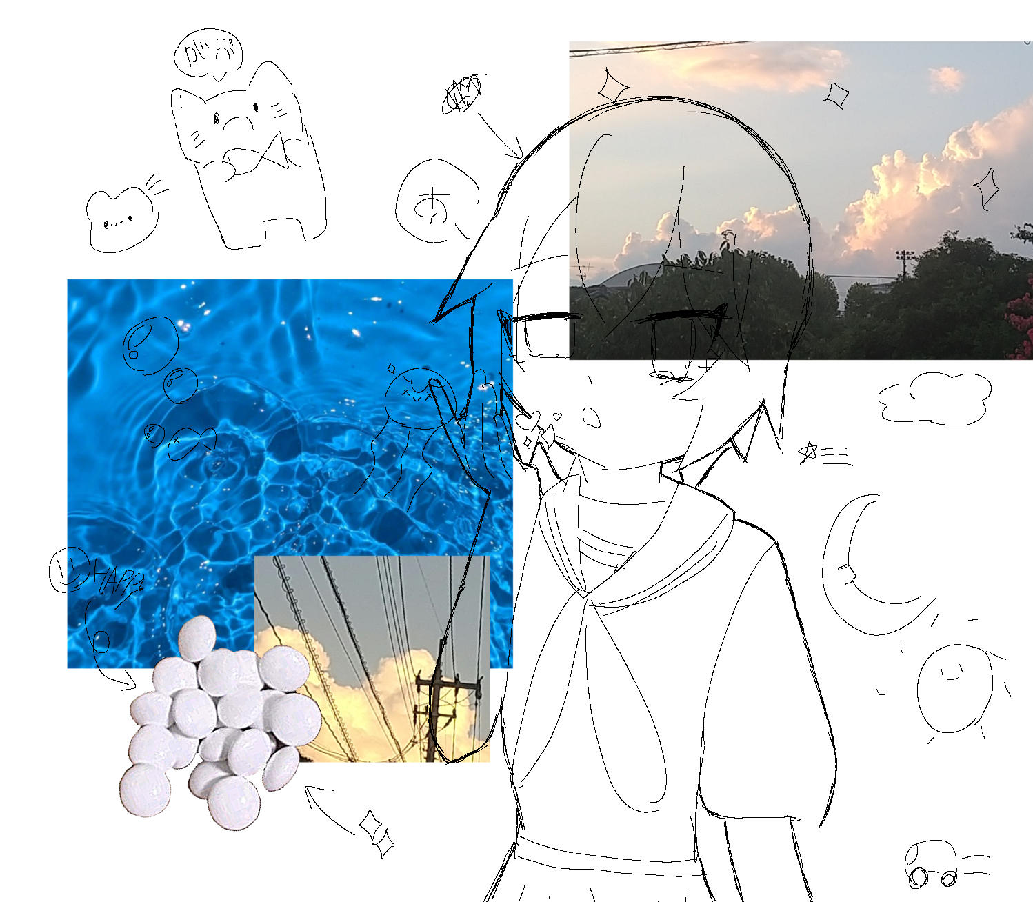 なんとなく手を動かしているうちに描かれていった、三種の神器のようなものを想像しました。焼きマシュマロは、焦がし具合が難しいんだよなぁ。本は少し分厚めで、冬にゆっくり読むのがいいかもしれない。絶妙な色のアイスクリーム、食べてみると意外に美味しかったりするんだよなぁ。いろんな声がどこかから聞こえてくるようです。