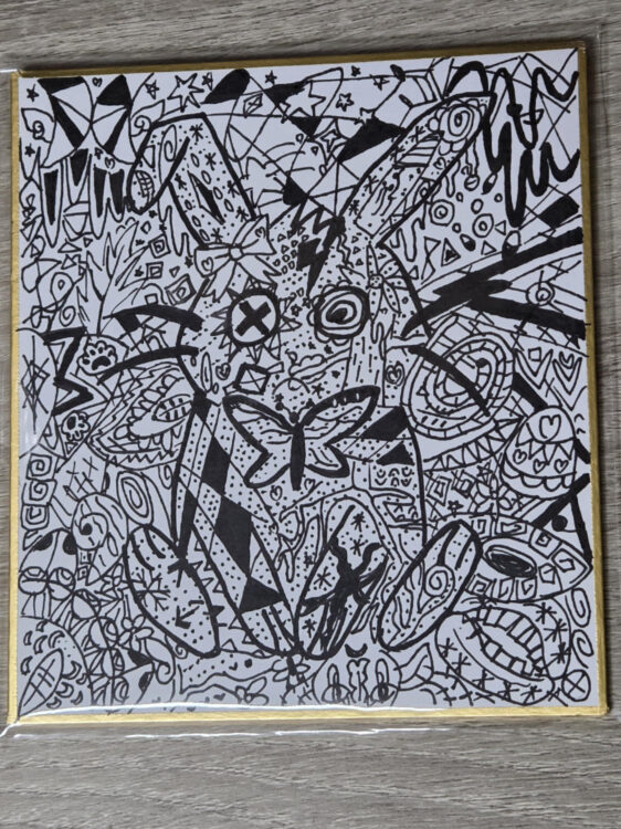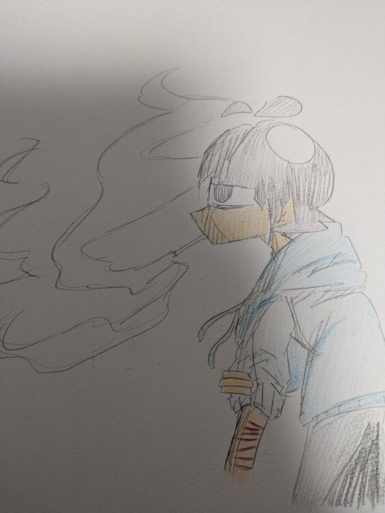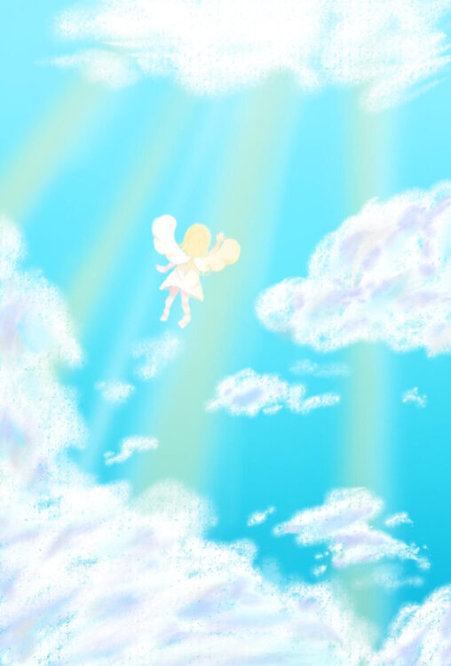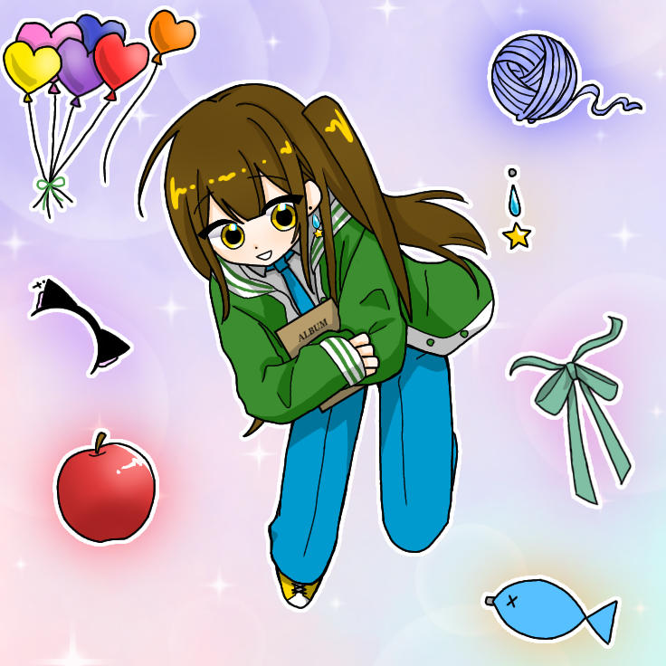 寝そべっているようにも、ふわりと浮かんでいるようにも見える女の子の小さい涙は、どんな意味合いが込められているのだろうかと考えました。赤でバツ印が付けられたアイテムは、周囲から禁止されていたり、手に入れてはいけないもの、あるいは手に入れられないもの、失ってしまったものなのでしょうか。野暮なことだと思いつつ、つい意図を聞いてみたくなる私がいました。
