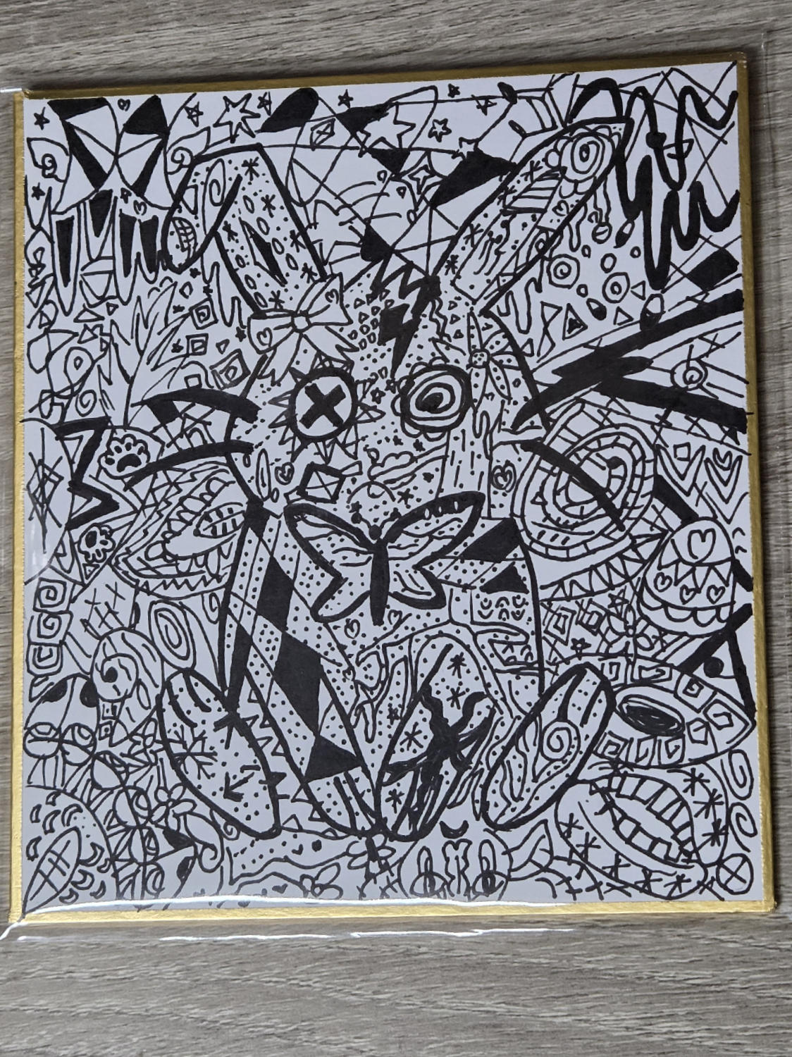 タイトルに込められた意味も考えながら作品を見ました。中央にいるコは、泣いてるようにも私には見えます。ツギハギのお洋服、首についた重たそうな鍵(でも開いている…?)口の向きや形は「青い人」と同じだけれど、対比の印象も感じました。苦しみや切実な想いがあるように見えながらも、画材の影響でしょうか、どこかすこし温かみがあって、つらい時に寄り添ってくれるような作品に感じました(私の勝手なイメージですが…。)