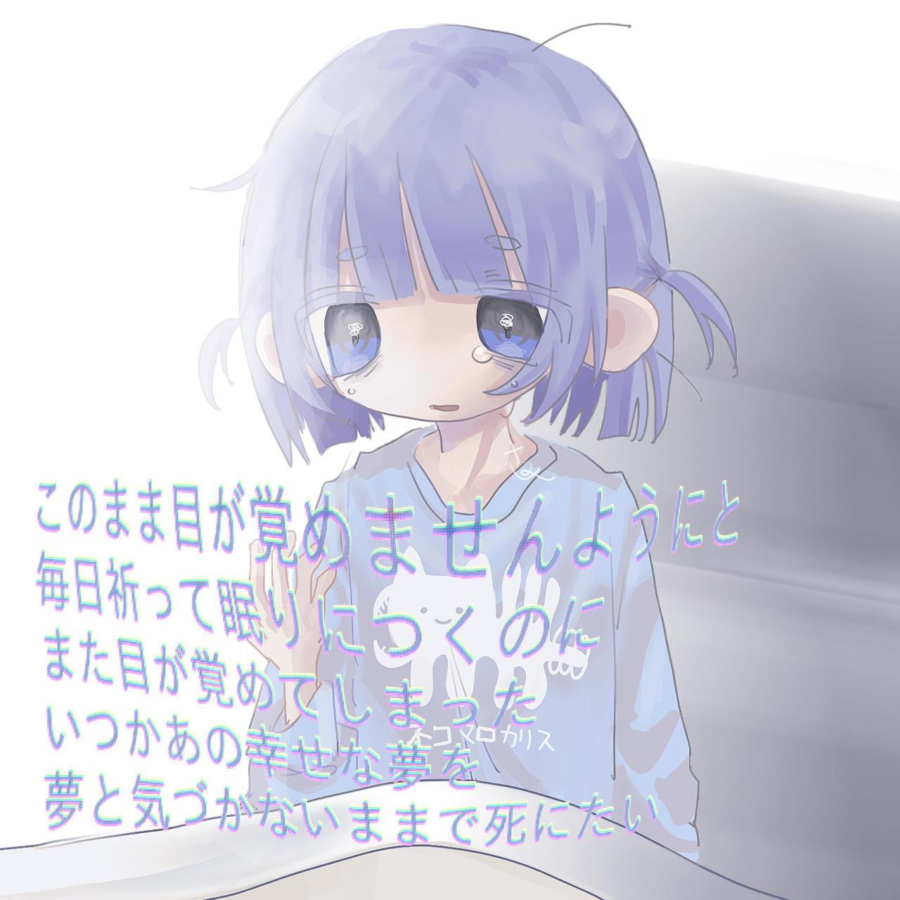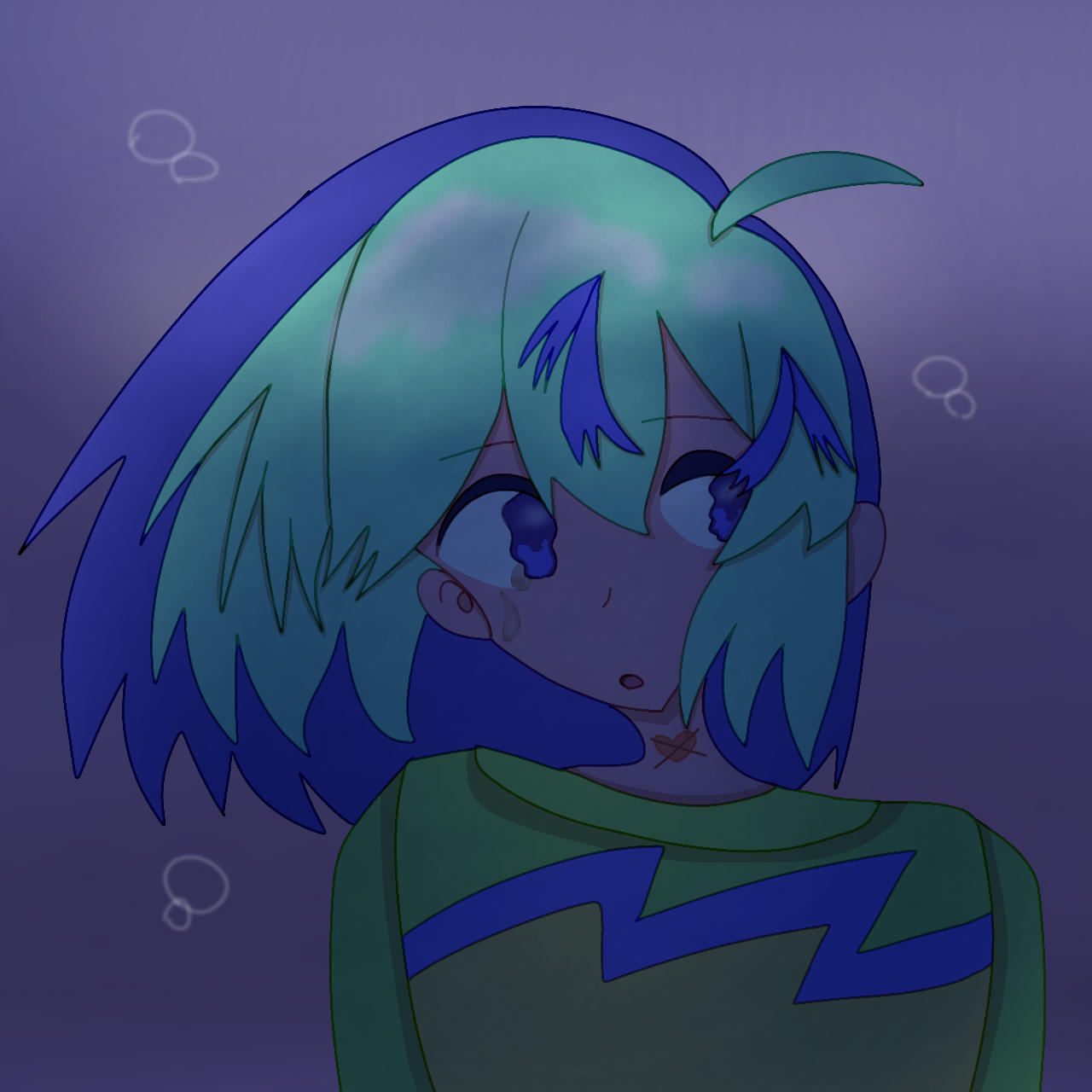 この子がいま何かを見ているなら、その視線の先には何があるんだろうか。しかし深海の世界はとても暗いはずで何も見えていないのかも。それであれば、過去を思い出しているような表情にも見えてきました。よく見るとこの子は泣いていて、暗い水の中なら誰にも気づかれずに泣けるし、泣いている本人でさえこぼれる涙に気づかないかもしれないなどと考えました。