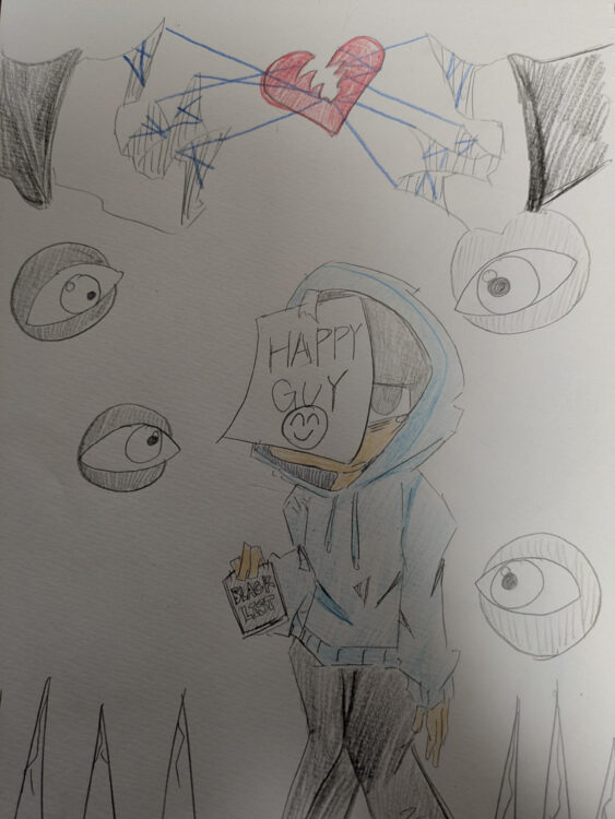 皆に平気だと見せるために毎日笑顔を作っているのを表しました。