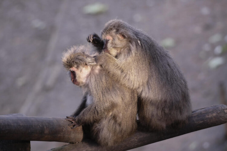 なんだかそれぞれのお猿さんの手をまじまじと見てしまいました。左の子は体重を支えるために手でしっかりと身体を支えバランスをとっていて、右の子は正に「職人の手つき」と言わんばかりの指使いのように感じた私がいます。右の子の左手の置き方…(抑え方?)なんかいいなぁと感覚的に思ったのと、二人?二匹?の左指の広げ方の差にも、私の「なんかいいなぁ」が発動しました。
