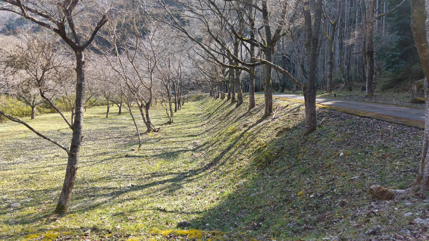 当てずっぽうではいけないなと思いつつ、樹皮や枝ぶりて、桜の木かな?と想像しました。(違っていたらすみません・・)整然と並んだ木々を見て、細やかな人が植えたのだろうか・・と考えたりしていました。季節が巡ってくると、また違った景色を見せてくれるのかなと、なんだか少しワクワクしている自分がいました。
