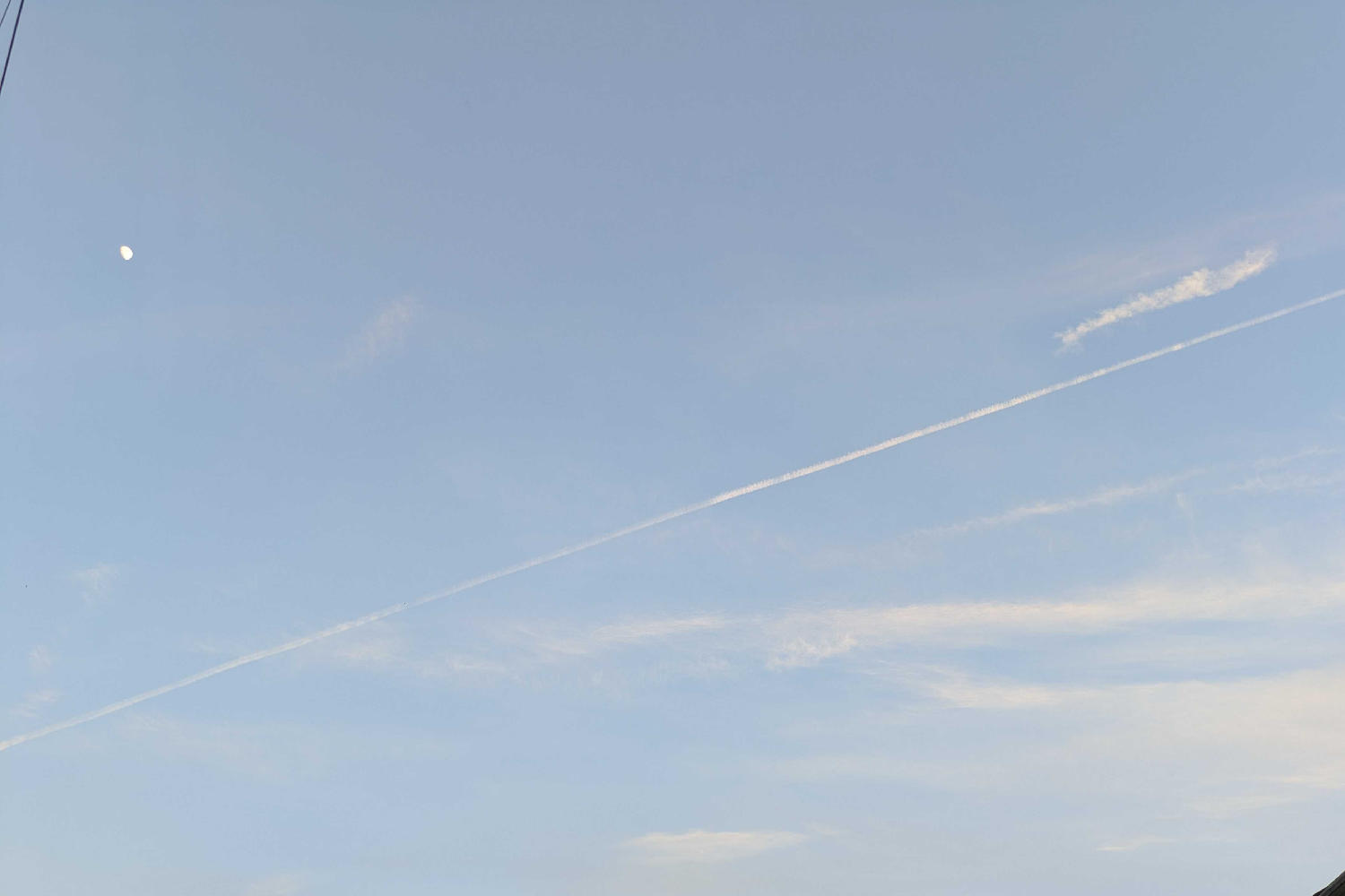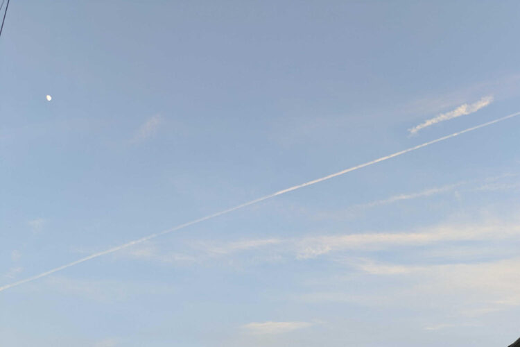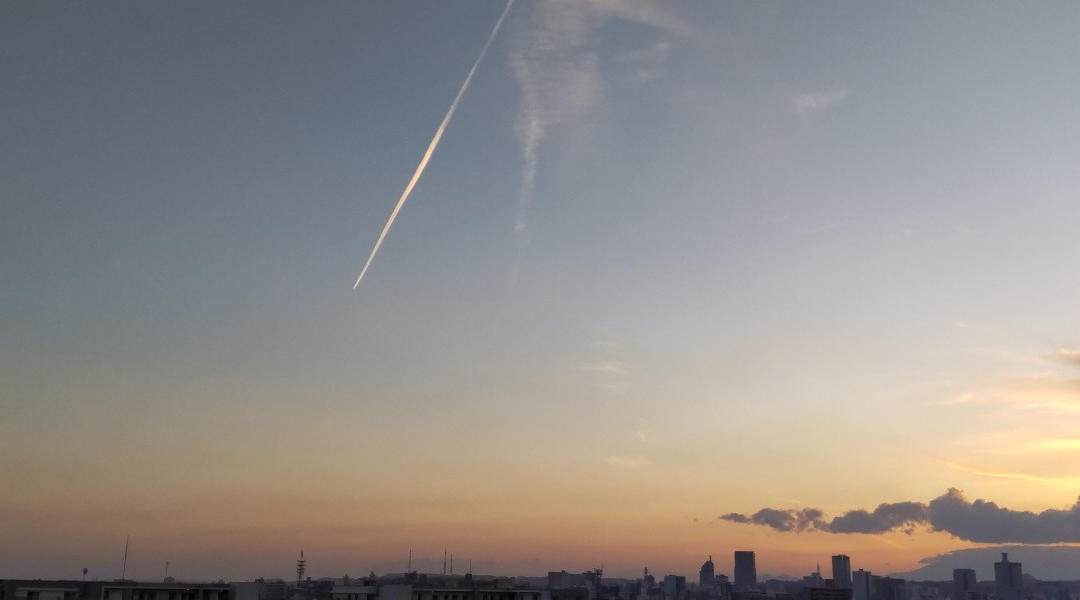 もうおしまい、帰る時間だよって、終わりを告げられているような、張り詰めた心地を感じました。向こうの空のほの赤く色づいたところも徐々に暗くなっていく時間でしょうか。ひこうきぐもは空間を切りさいてしまうみたいに鮮烈に感じました。だけどなぜか上に上に手を伸ばしてみたくなるような空で、投稿者さんはどんな気持ちでこの空の下にいたのだろうと思いを馳せていました。