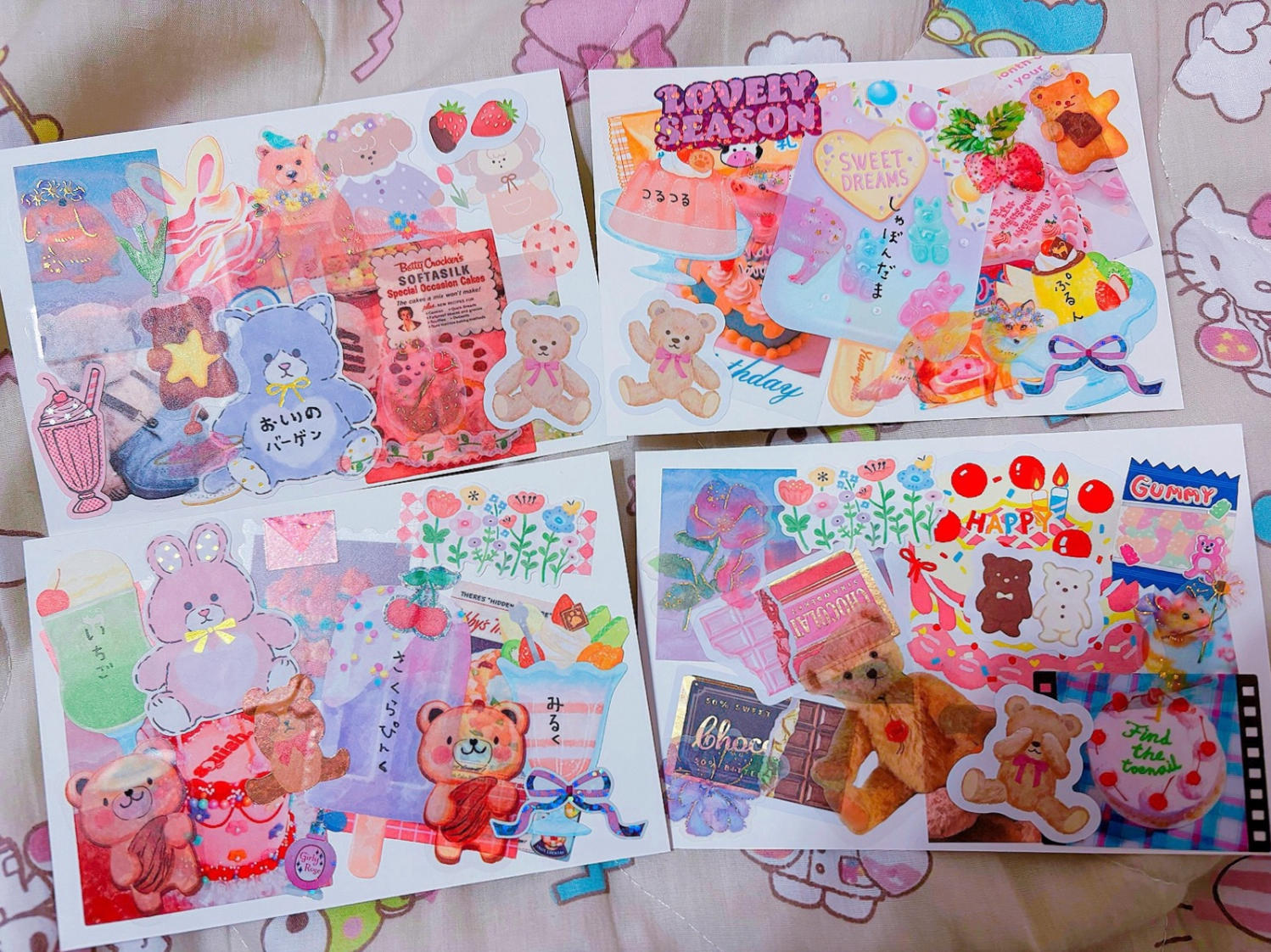 一枚ずつに「カワイイ」が盛り沢山で、眺めているだけで元気をお裾分けしてもらっているような気持ちになりました。ペタペタと貼りながら、構図や隙間を考えて埋めていく作業は、なんだかワクワクしそうだなと思います。自分の「好き」をぎゅっと詰め込む作業を、私もやってみたいなぁと思いました。