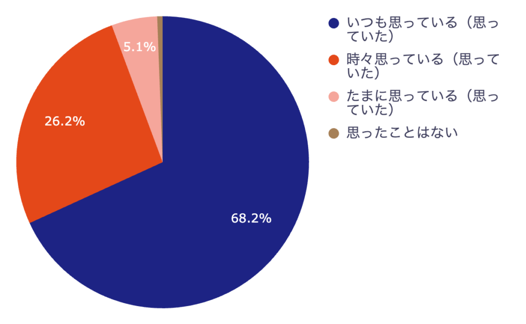 「いつも思っている(思っていた)」「時々思っている(思っていた)」あわせて95%近くを占める結果となりました。「思ったことはない」も0.6%いました。