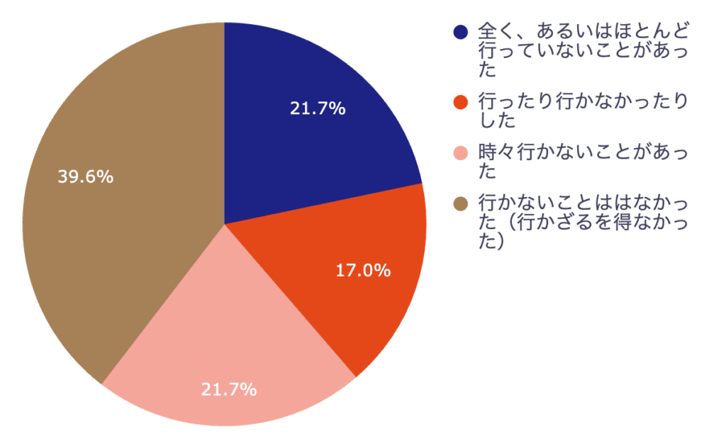 「行かないことはなかった(行かざるを得なかった)」が39.6%で最も多く、「全く、あるいはほとんど行っていないことがあった」が21.7%で続きました。